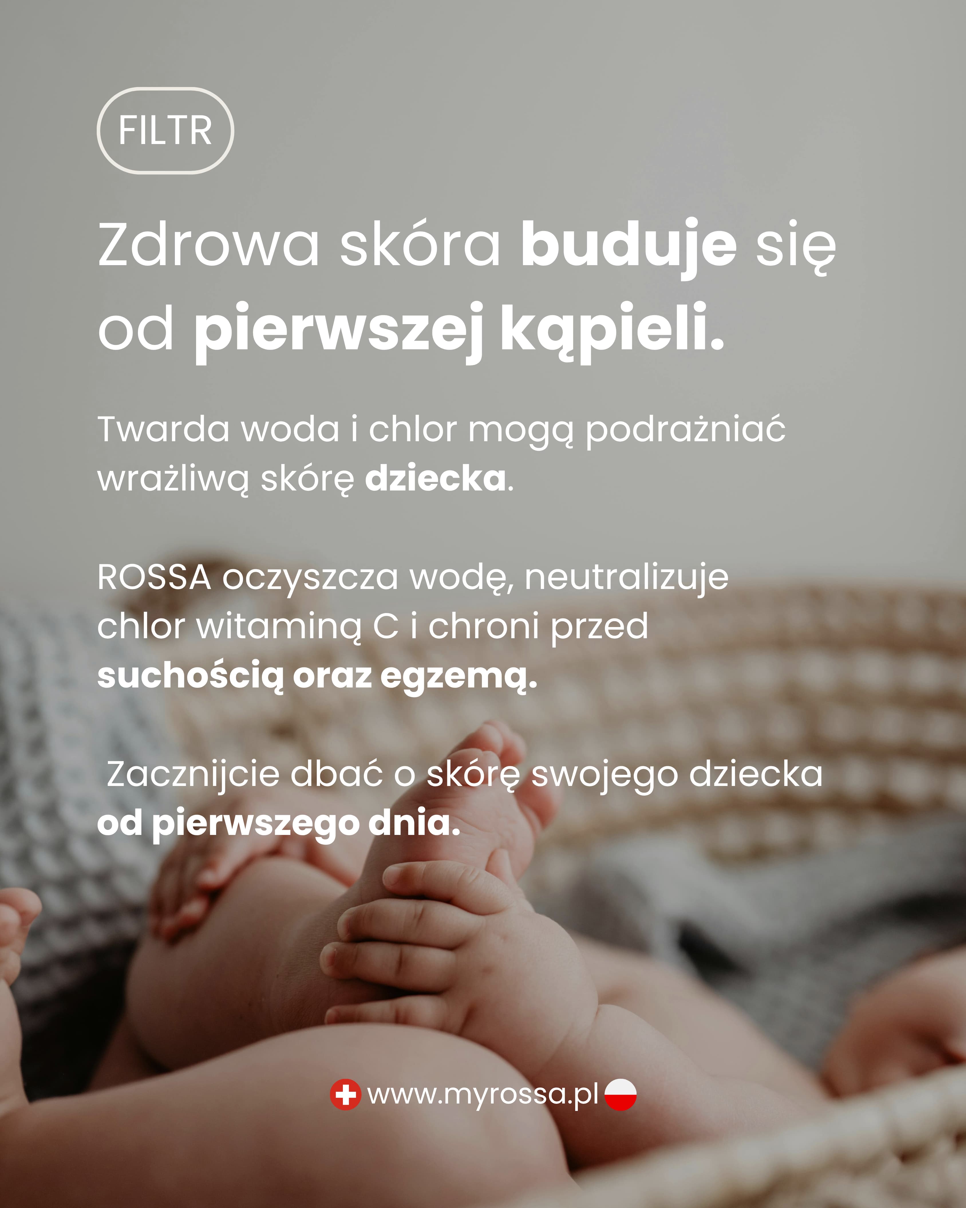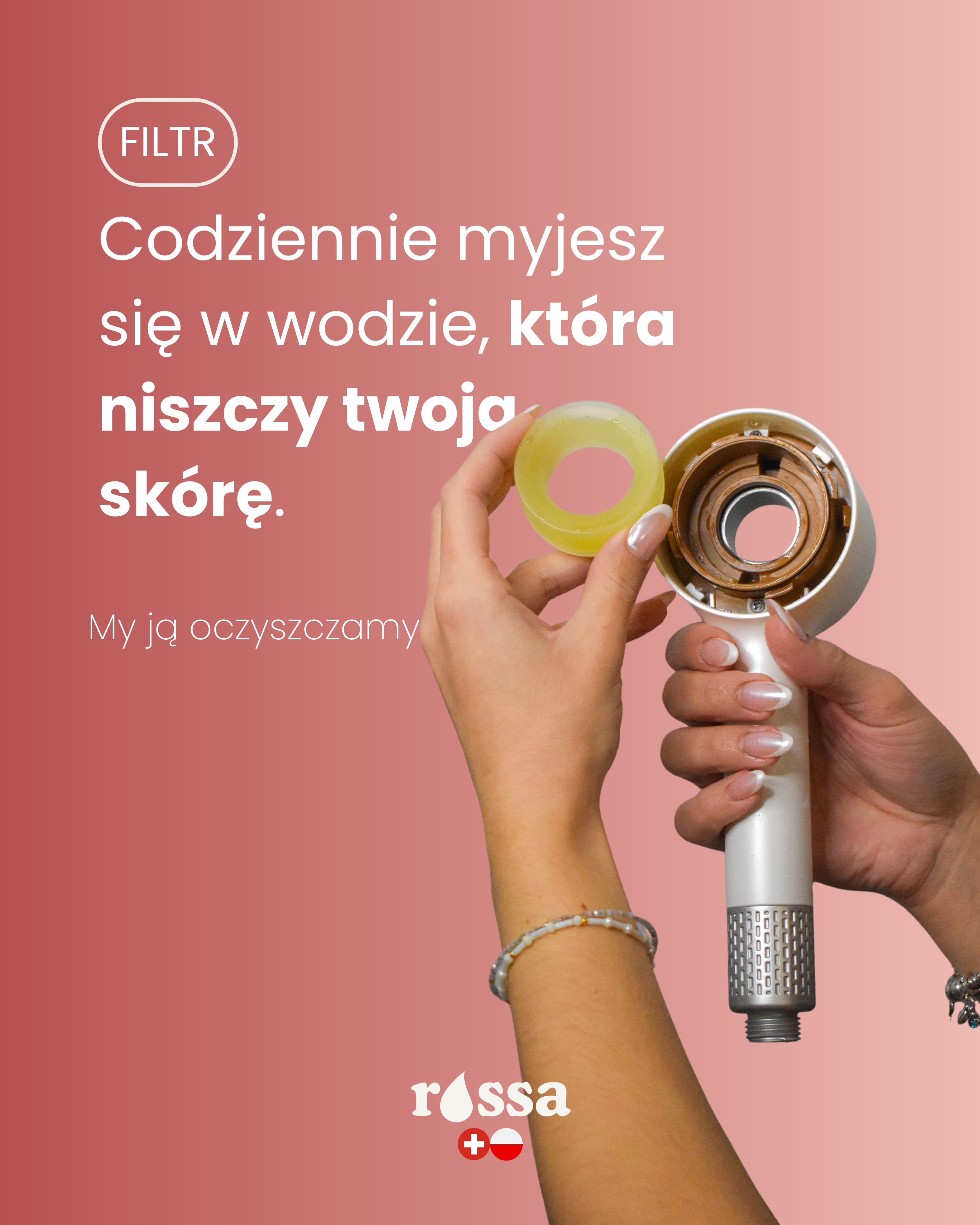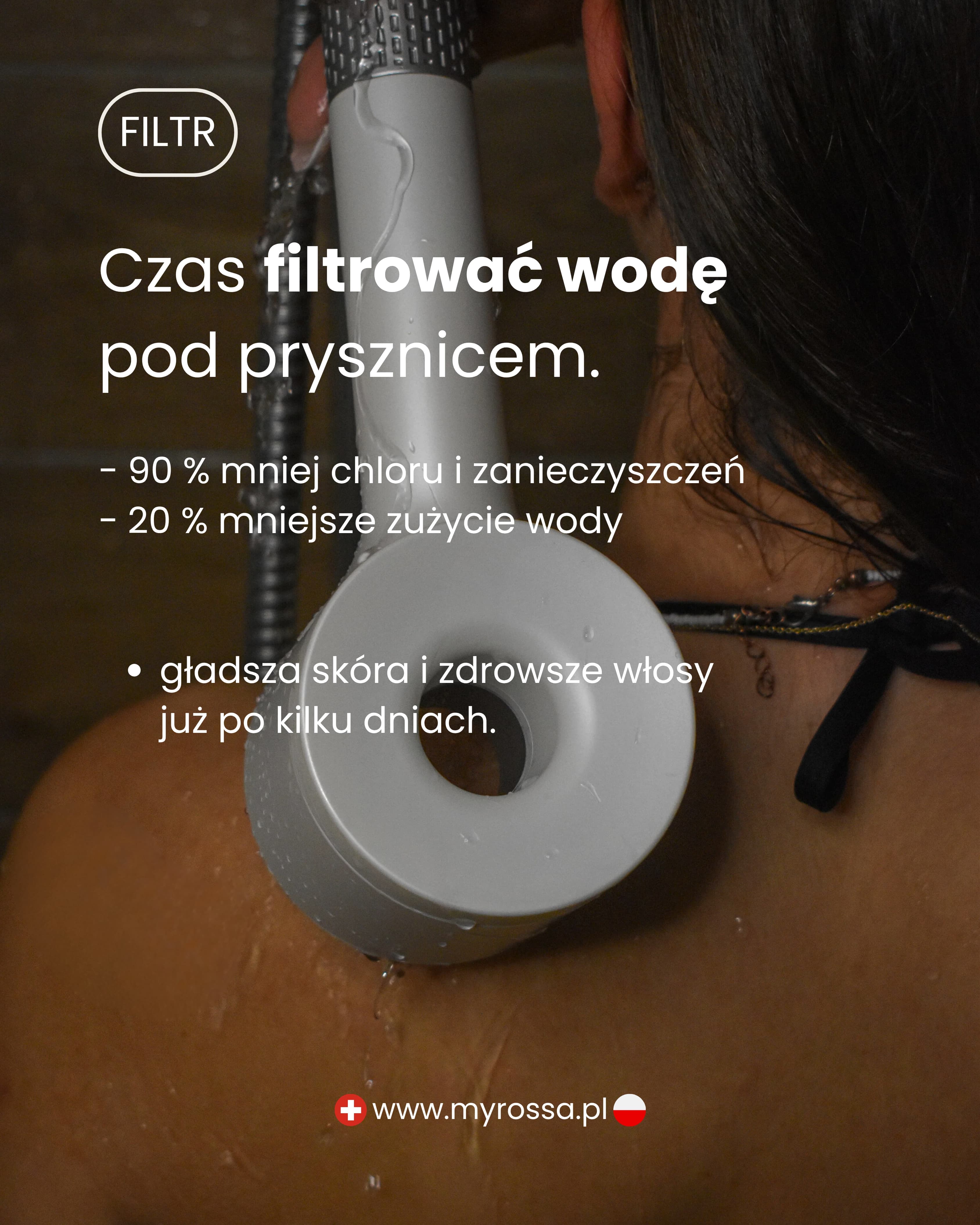 Podaruj sobie prysznic z ROSSA, który dzięki filtracji ACF i pierścieniowi aromatycznemu z witaminą C sprawia, że skóra staje się gładsza, włosy zdrowsze, a Ty jednocześnie oszczędzasz wodę.